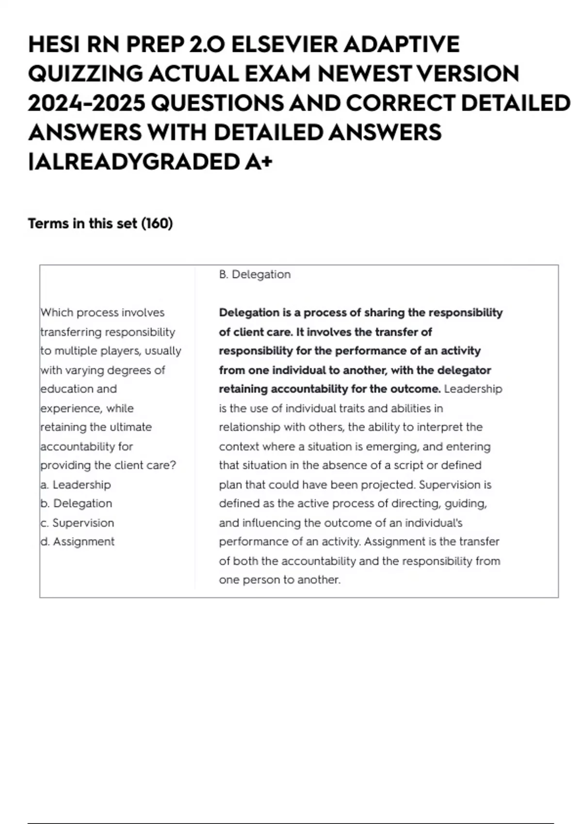 a. To deliver patient care The ultimate goal of the delegation is to maximize