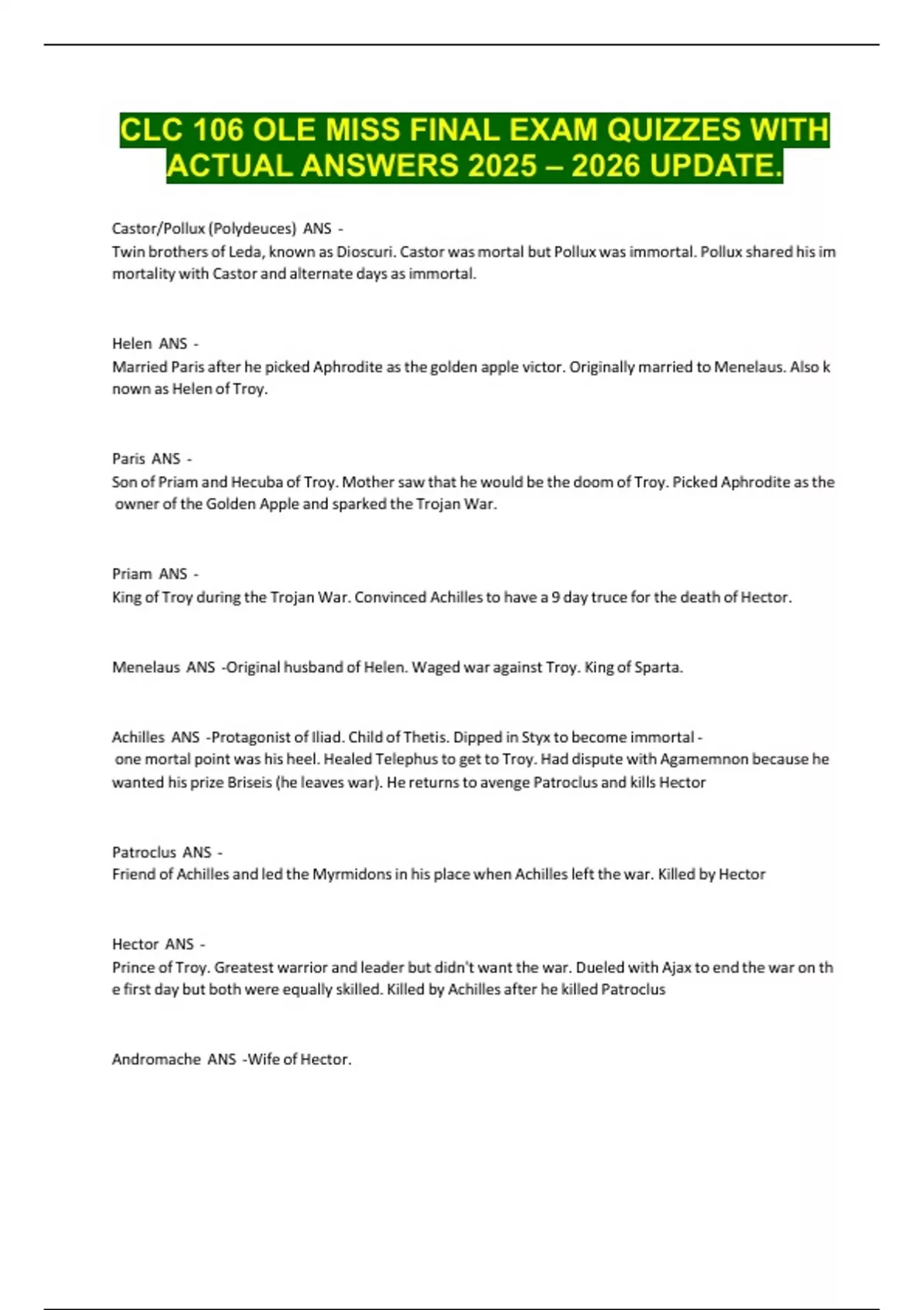 ACTUAL ANSWERS 2025 – 2026 UPDATE.