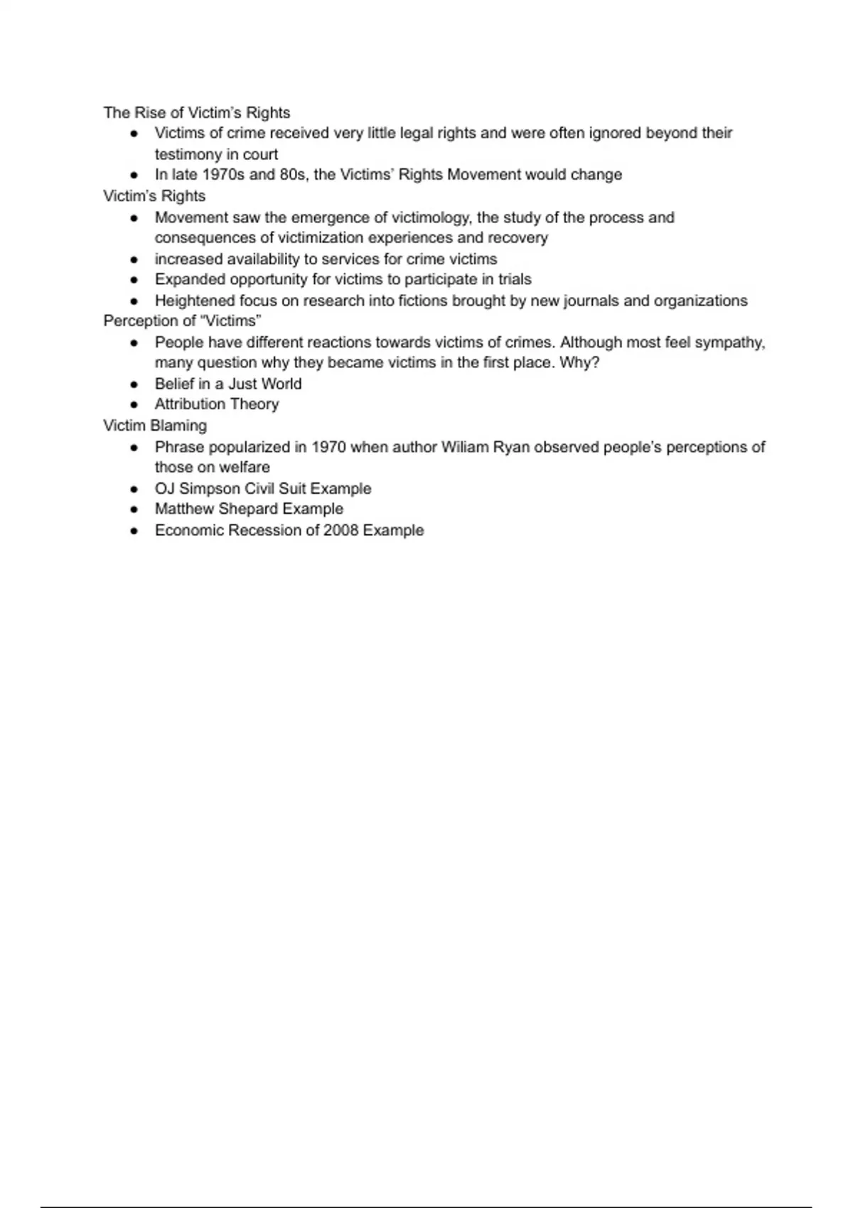 ● Victims of crime received very little legal rights and were often ignored beyond their