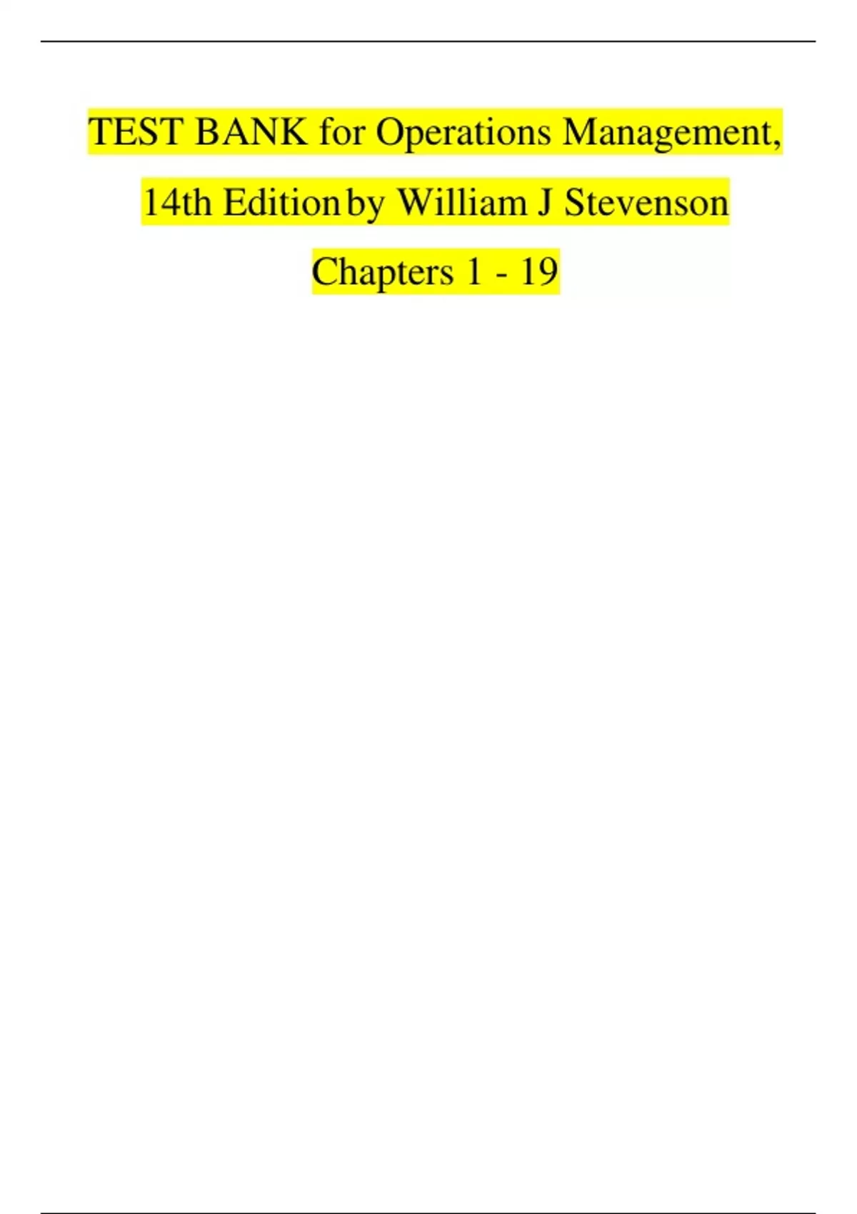 Master the fundamentals and advanced topics of operations with the Test Bank for Operations Management, 14th Edition by William J. Stevenson – Latest Version. This all-inclusive test bank provides expertly verified questions and answers covering every chapter, including operations strategy, process design, capacity planning, quality management, lean systems, supply chain logistics, and inventory control. Designed to align perfectly with Stevenson’s widely-used textbook, this resource is ideal for students in business, management, engineering, and related programs. It includes a variety of question formats such as multiple-choice, true/false, and calculation-based problems to ensure full comprehension and readiness for exams. Use this test bank to reinforce your understanding, improve your grades, and excel in both coursework and practical applications of operations management principles.