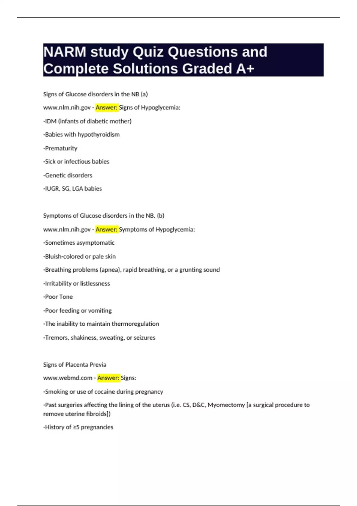 NARM study Quiz Questions and Complete Solutions Graded A+