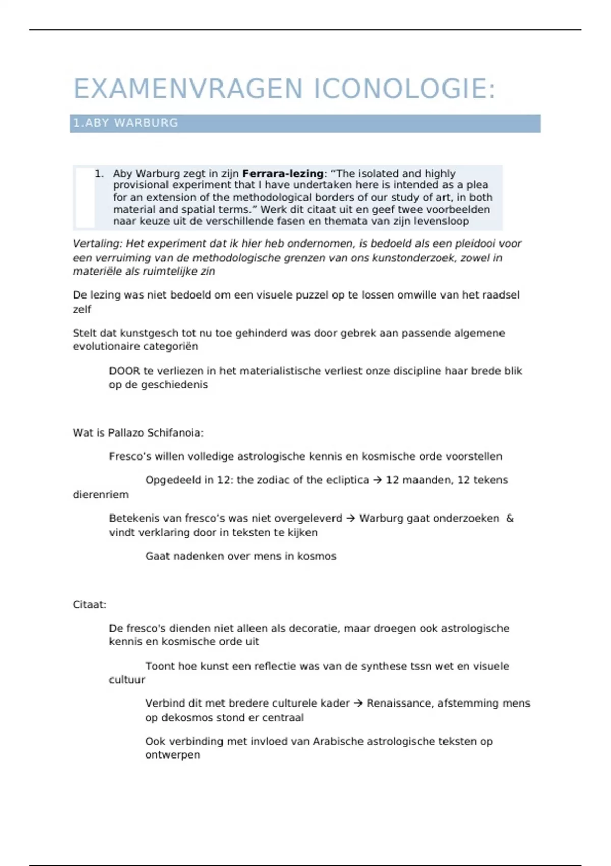 1. Aby Warburg zegt in zijn Ferrara-lezing: “The isolated and highly