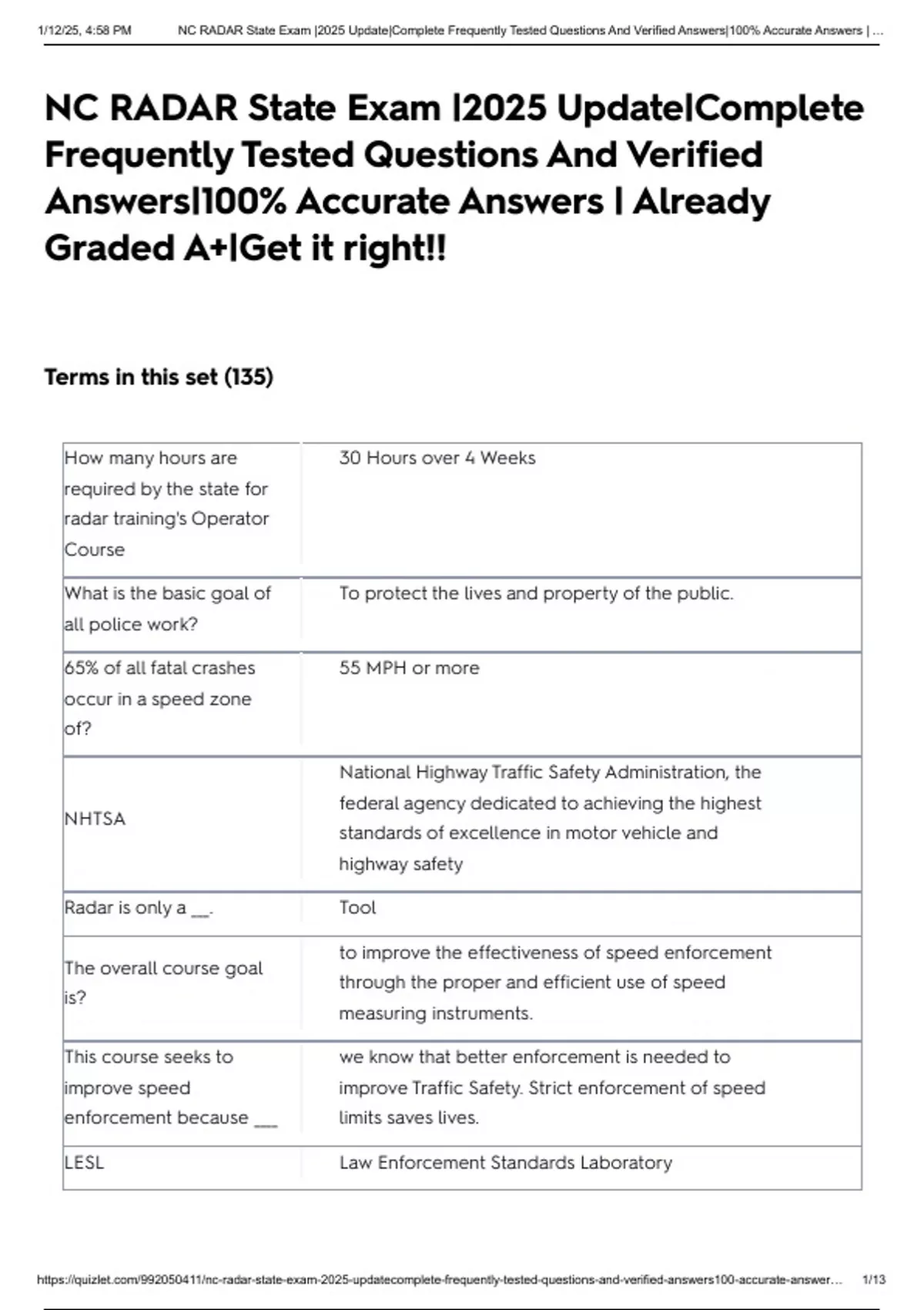 , 1/12/25, 4:58 PM NC RADAR State Exam |2025 Update|Complete Frequently Tested Questions And Verified Answers|100% Accurate Answers | …