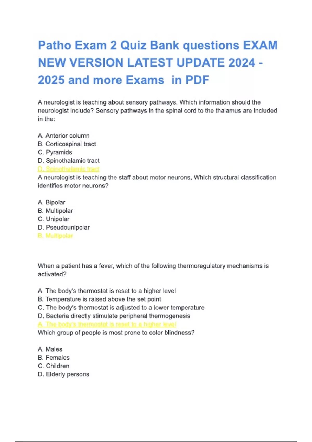 Patho Exam 2 Quiz Bank questions EXAM NEW VERSION LATEST UPDATE