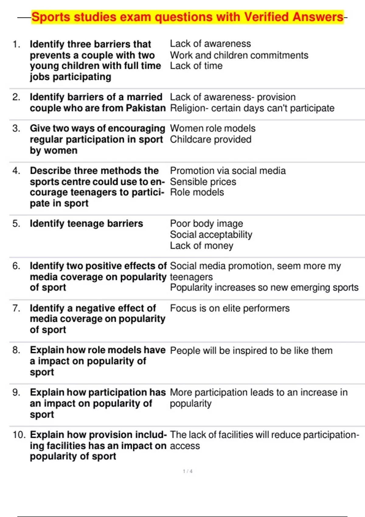 10. Explain how provision includ- The lack of facilities will reduce participation-