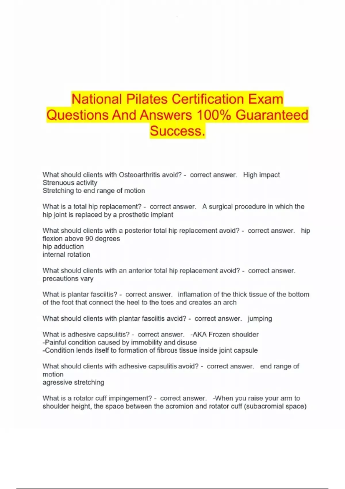 National Pilates Certification Exam Questions And Answers 100% Guaranteed Success.