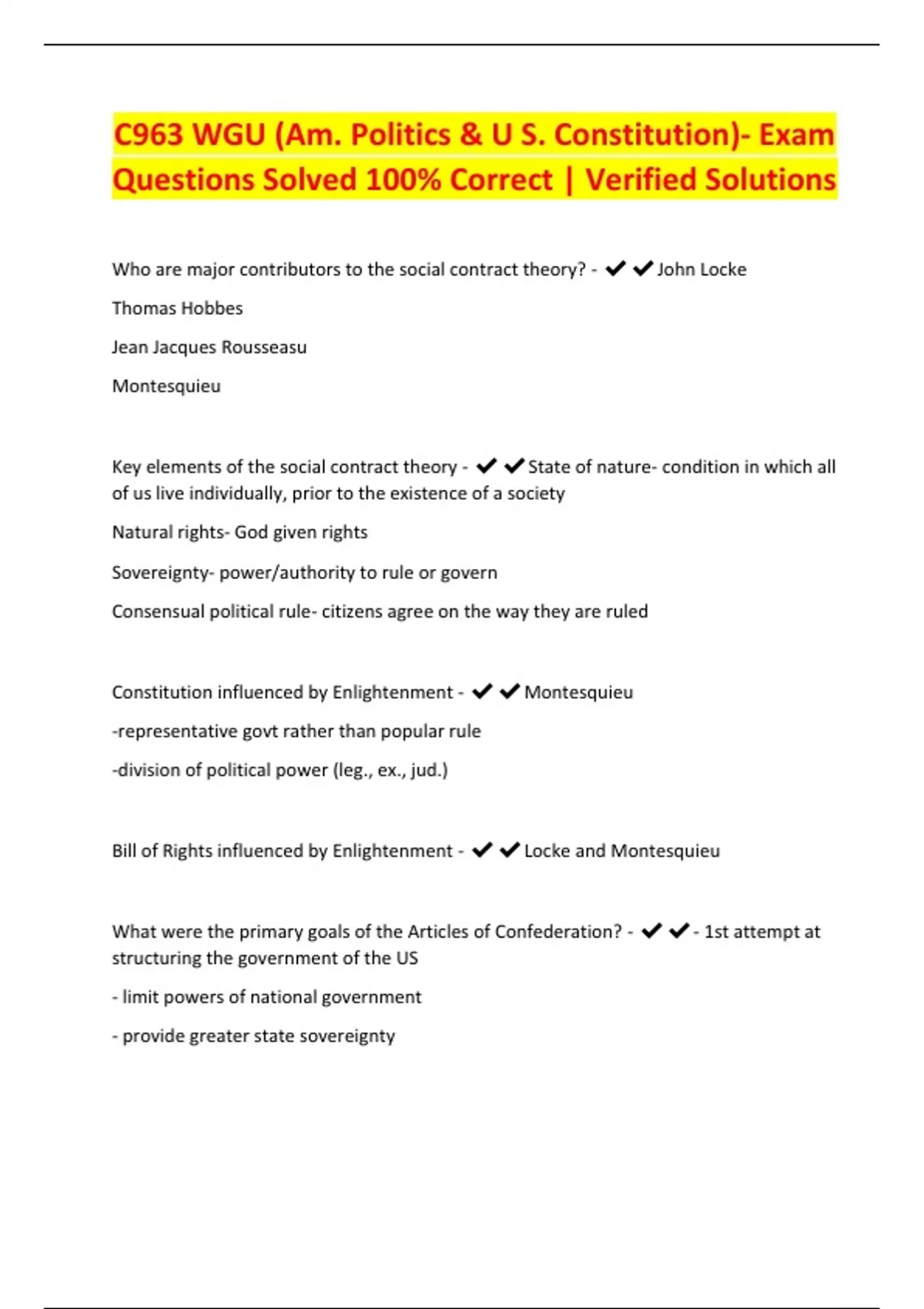 C963 WGU (Am. Politics & U S. Constitution)- Exam