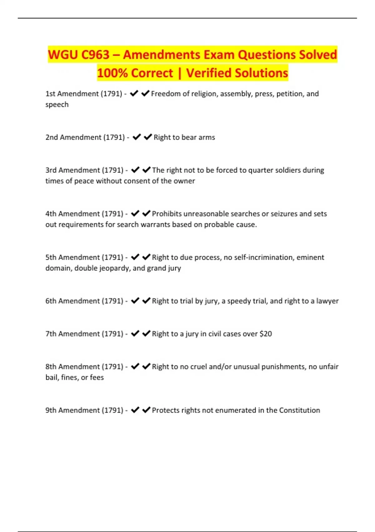 WGU C963 – Amendments Exam Questions Solved 100% Correct | Verified Solutions