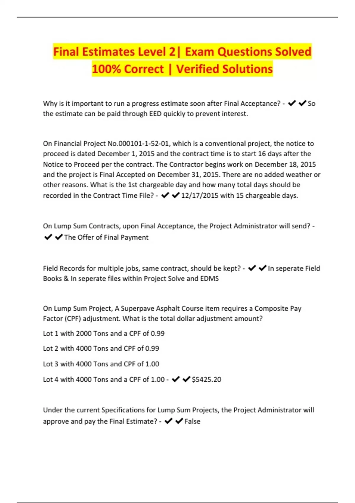Final Estimates Level 2| Exam Questions Solved