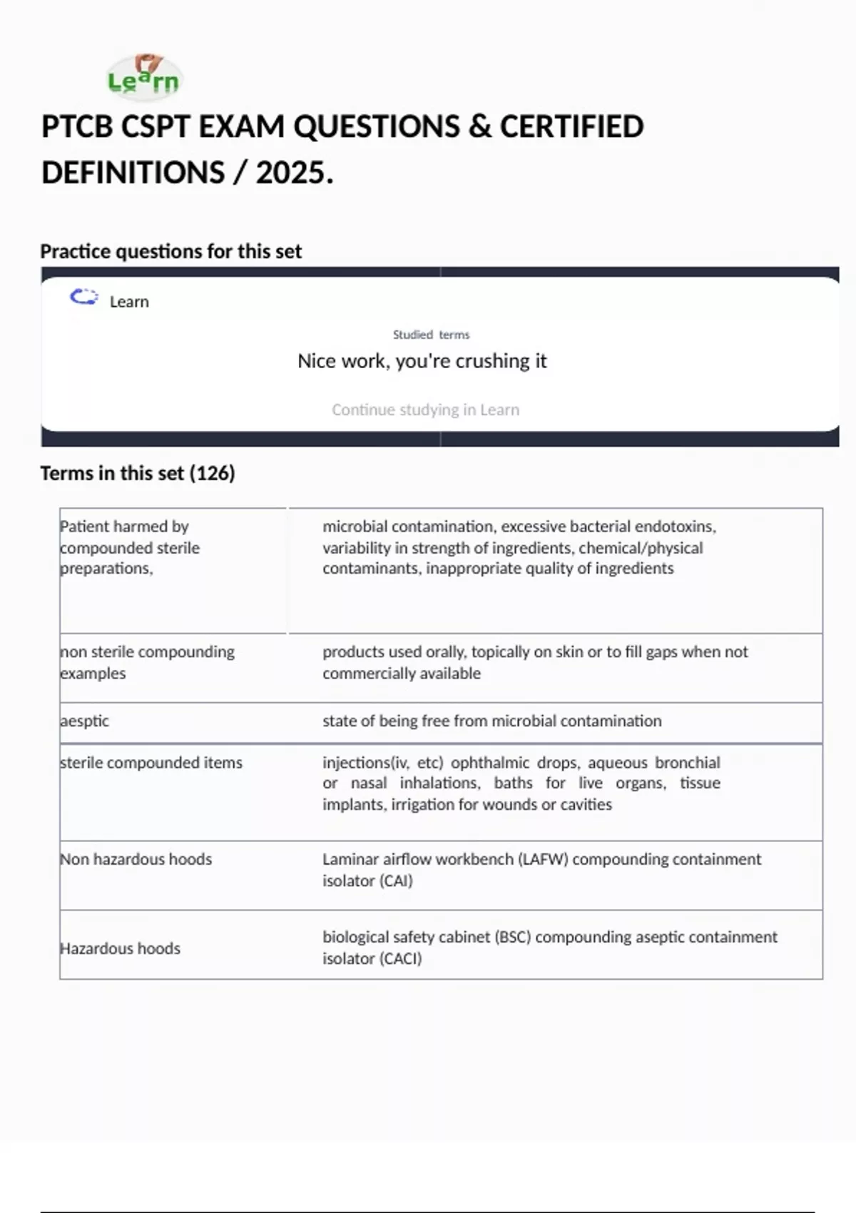 Continue studying in Learn