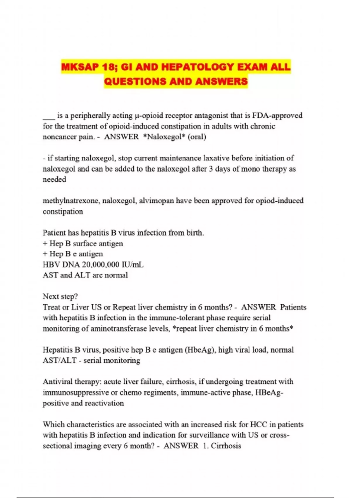MKSAP 18; GI AND HEPATOLOGY EXAM ALL QUESTIONS AND ANSWERS...