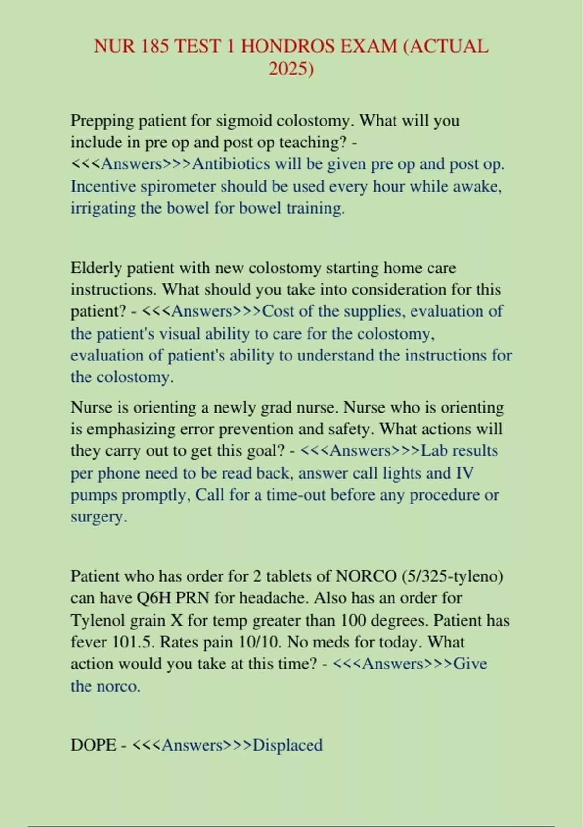 , NUR 185 TEST 1 HONDROS EXAM (ACTUAL