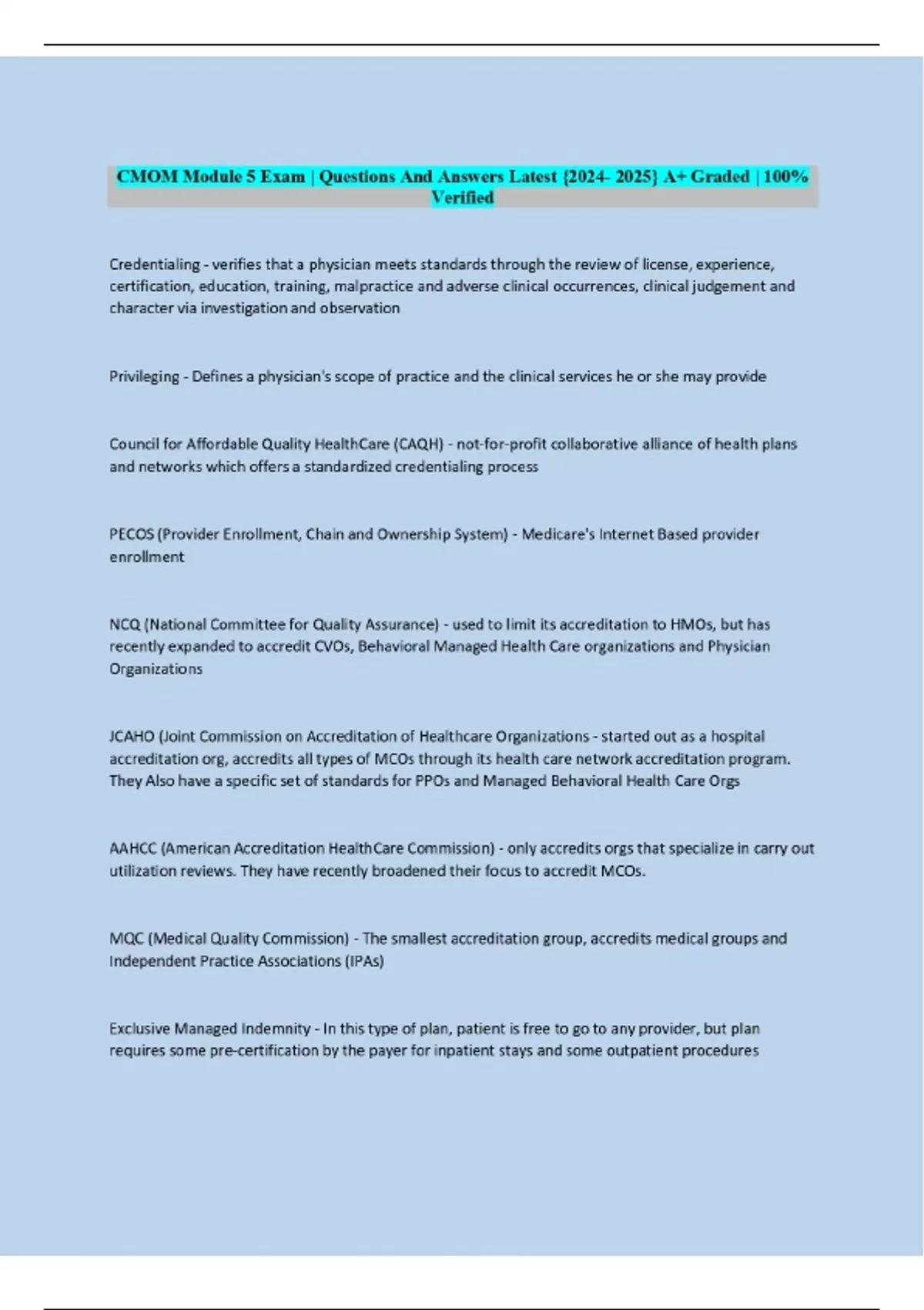 CMOM Module 5 Exam | Questions And Answers