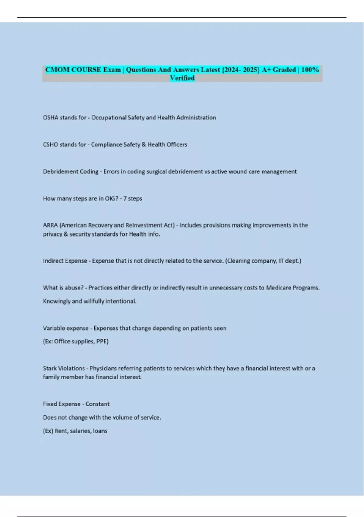 CMOM COURSE Exam | Questions And Answers