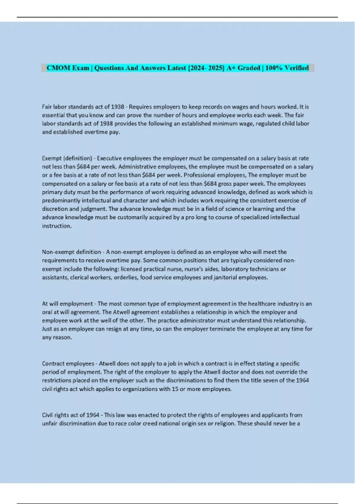 CMOM Exam | Questions And Answers