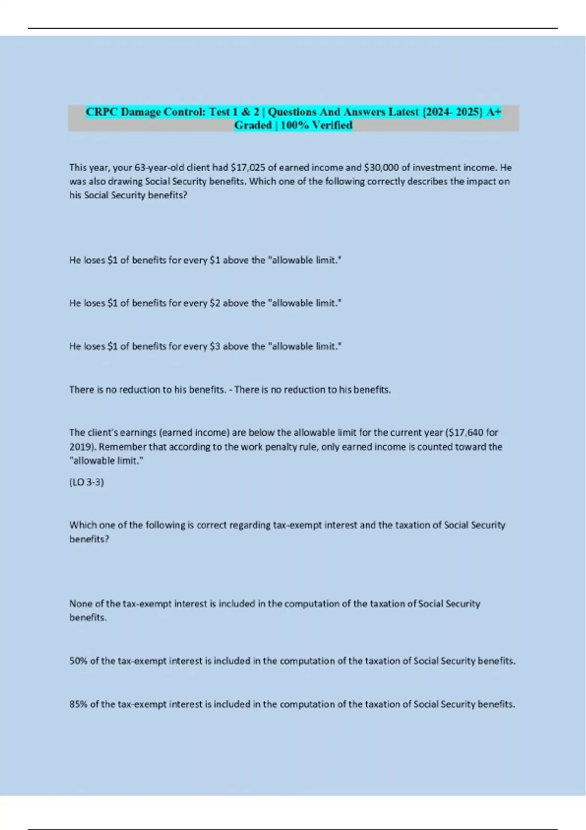 CRPC Damage Control: Test 1 & 2 | Questions And Answers