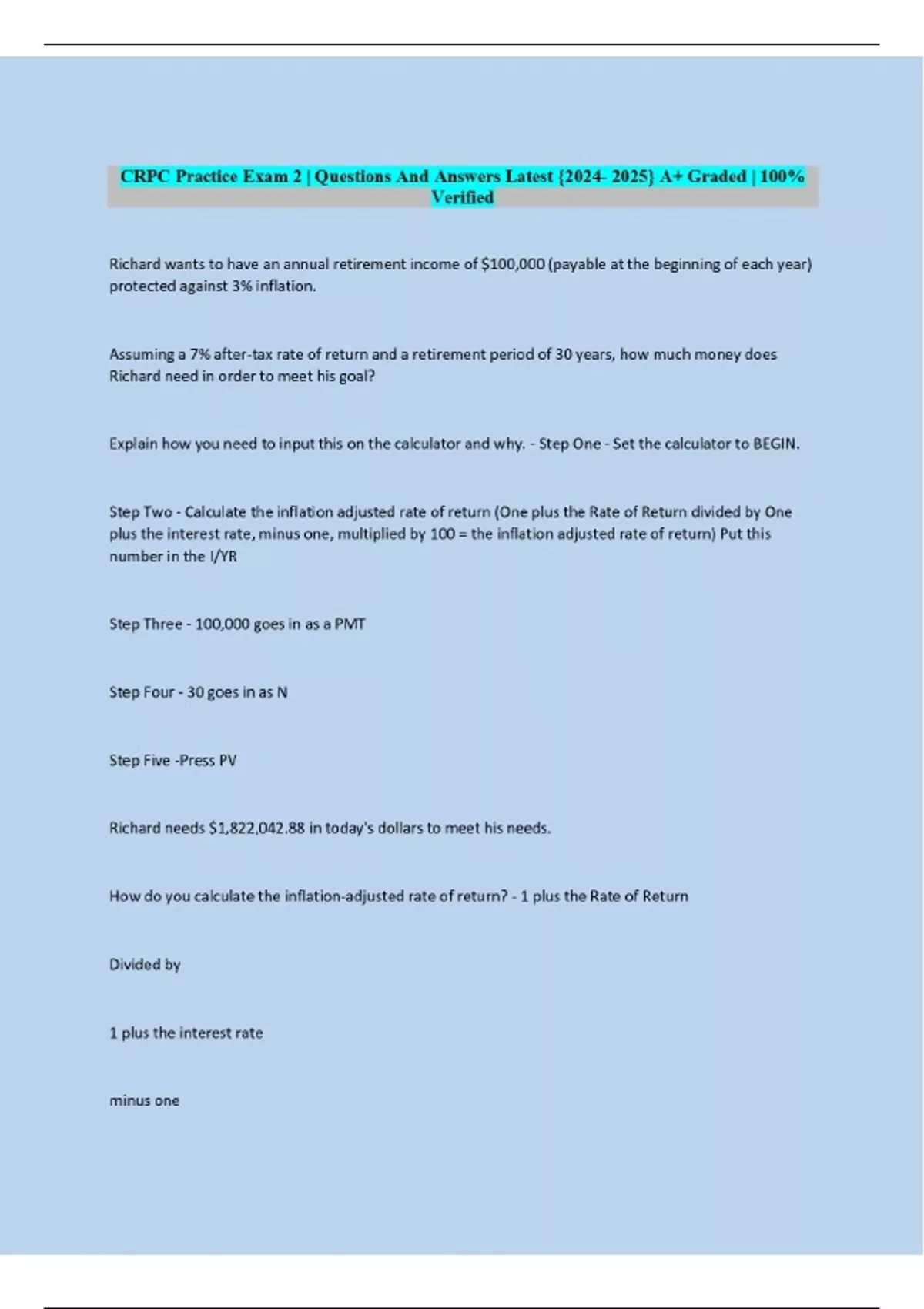 CRPC Practice Exam 2 | Questions And Answers
