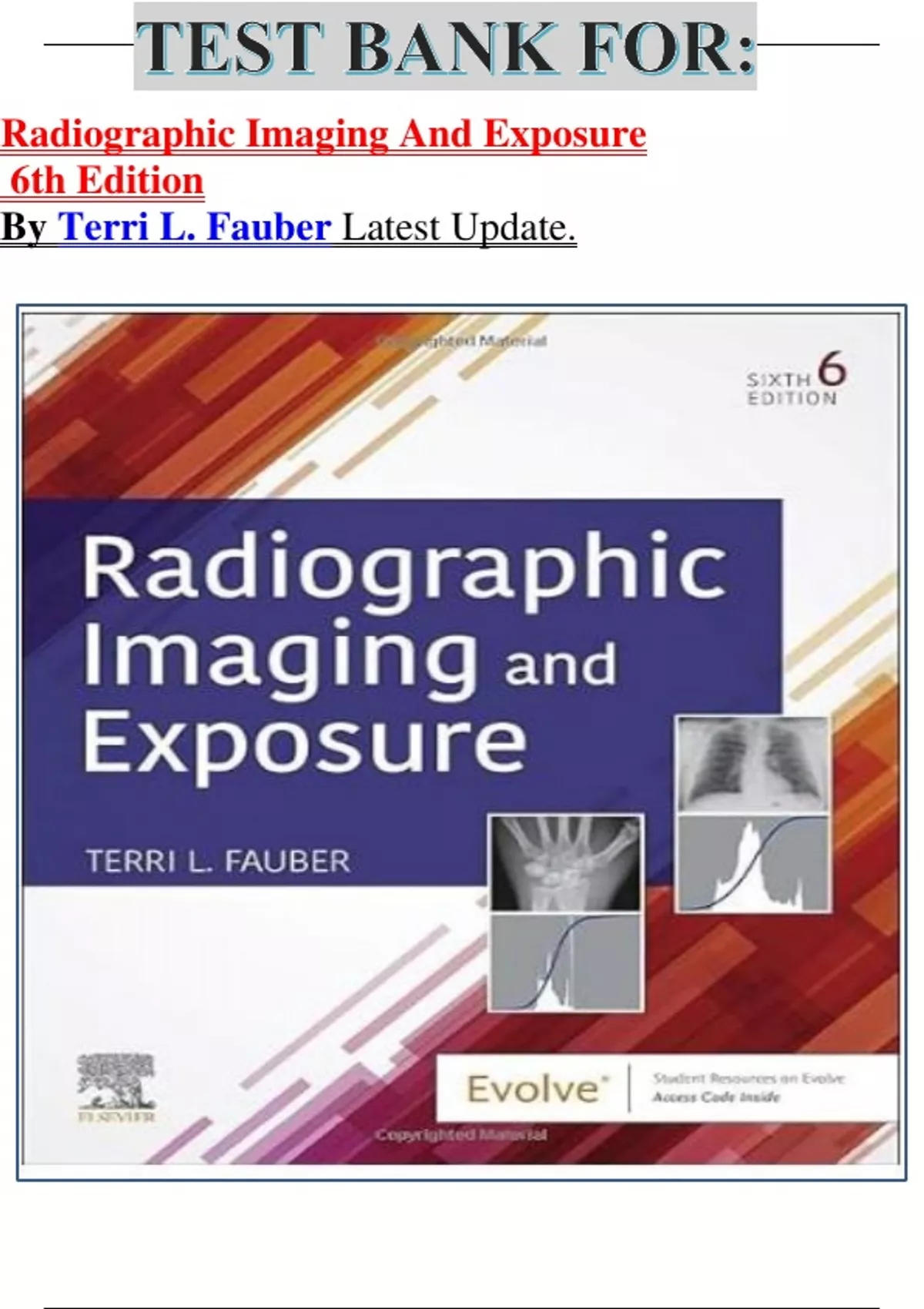 TEST BANK FOR: Radiographic Imaging And Exposure 6th Edition By Terri L. Fauber Latest Update.