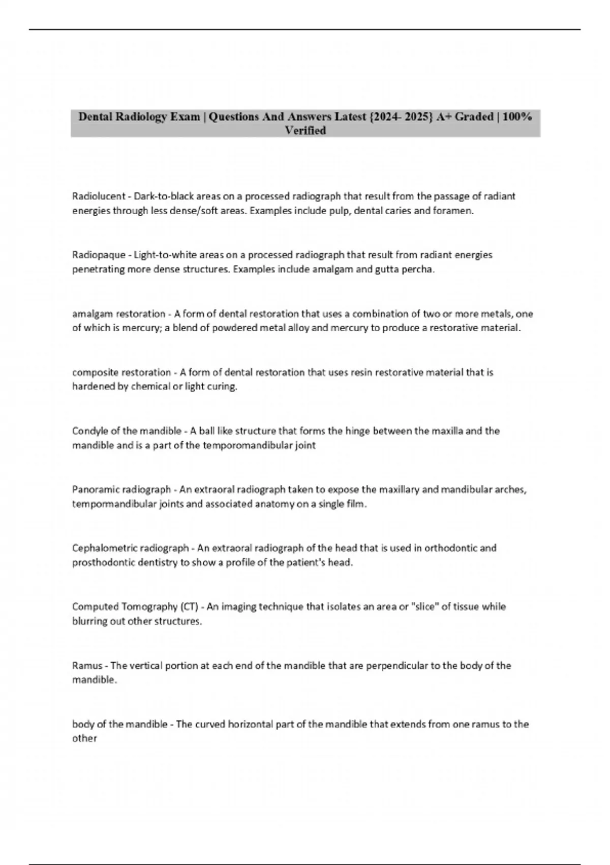 Dental Radiology Exam | Questions And Answers