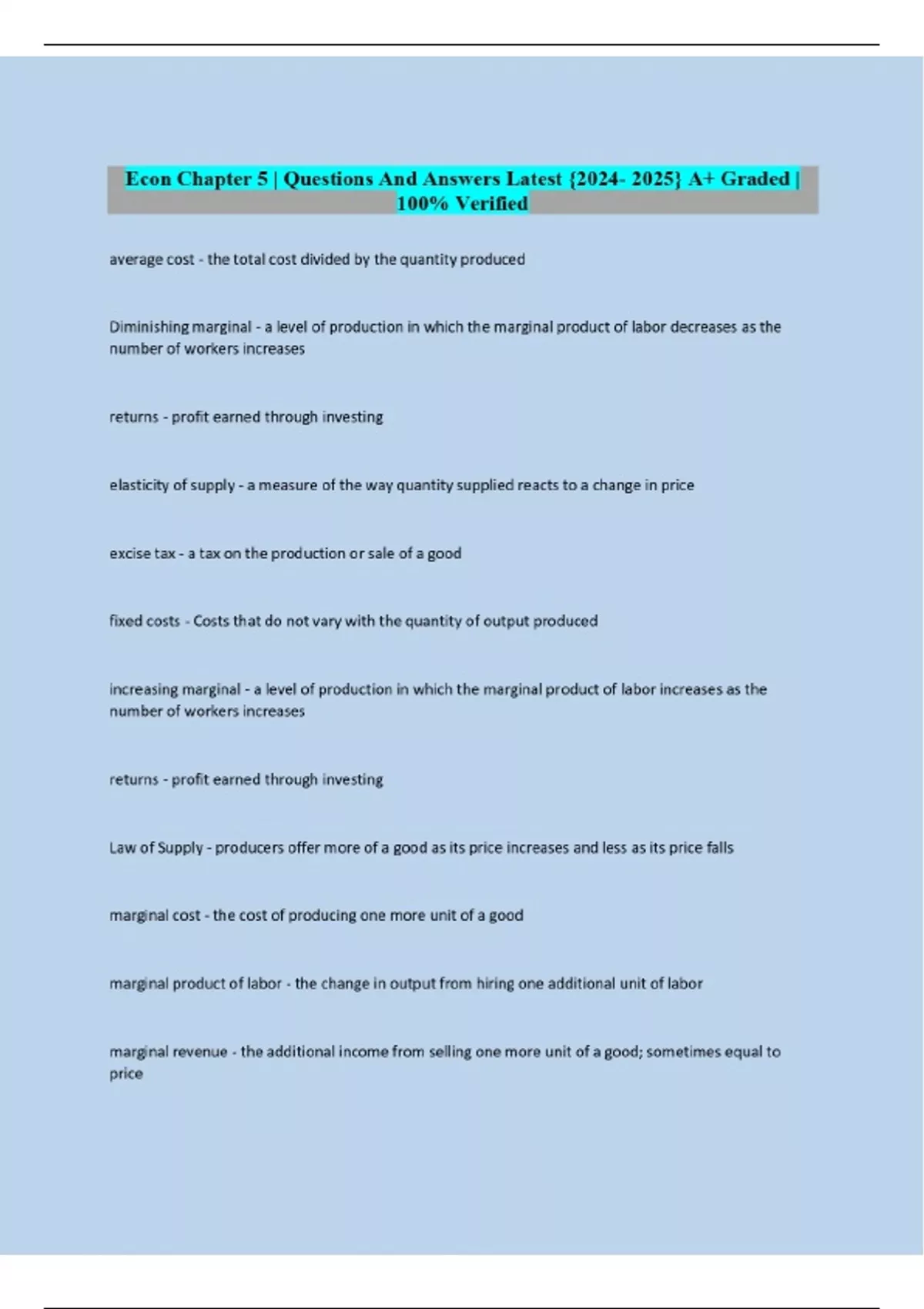 econ chapter 5 questions and answers