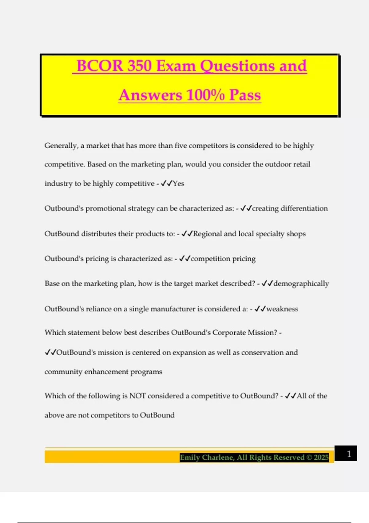 BCOR 350 Exam Questions and Answers 100% Pass