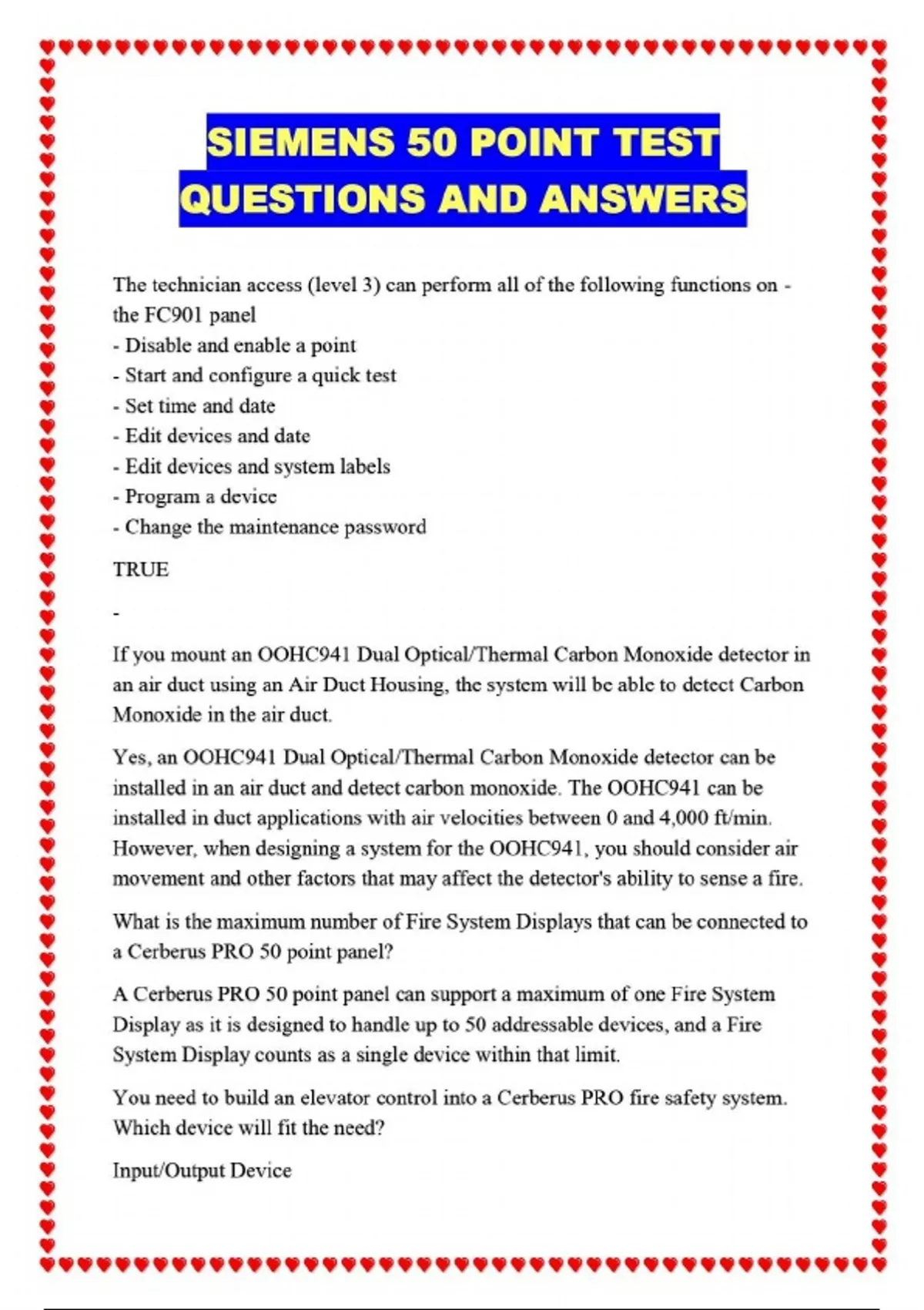 SIEMENS 50 POINT TEST QUESTIONS AND ANSWERS