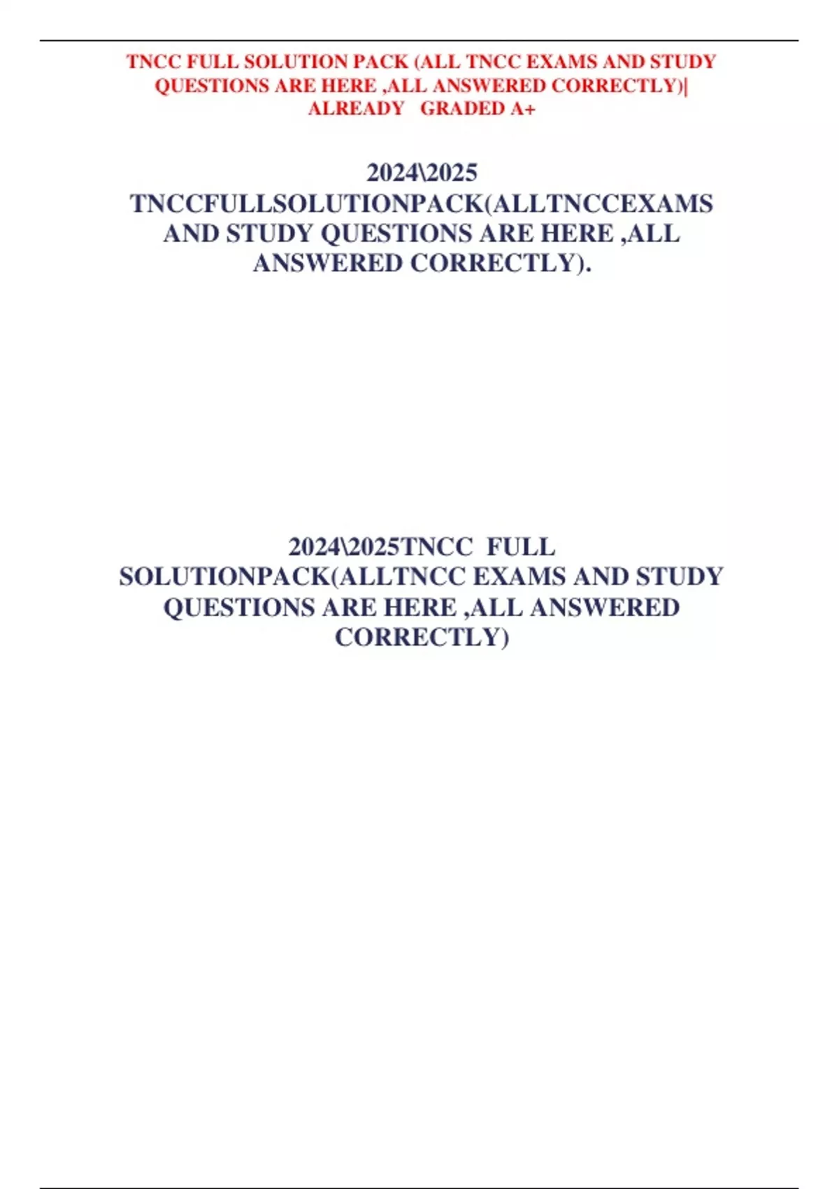 , TNCC FULL SOLUTION PACK (ALL TNCC EXAMS AND STUDY