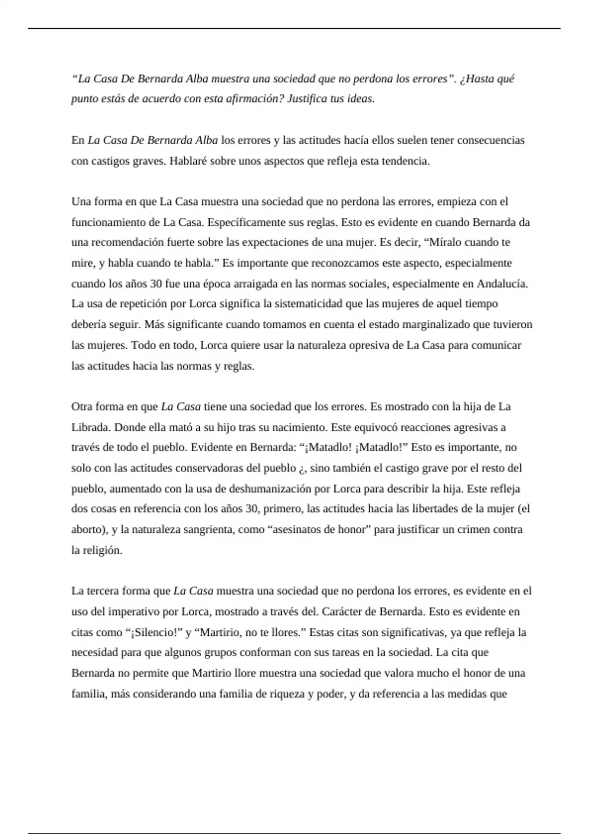 Essay La Casa De Bernarda Alba 2023 A-Level Spanish