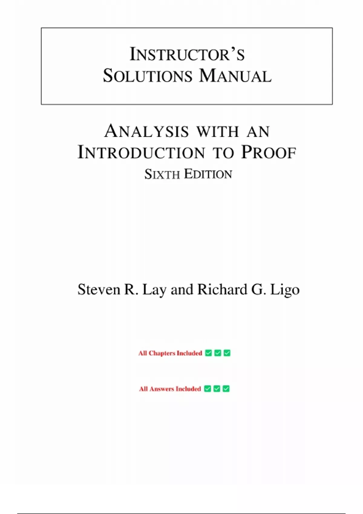 Instructor's Solution Manual for Analysis: With an Introduction to Proof 6th Edition by Steven R. Lay, All Chapters