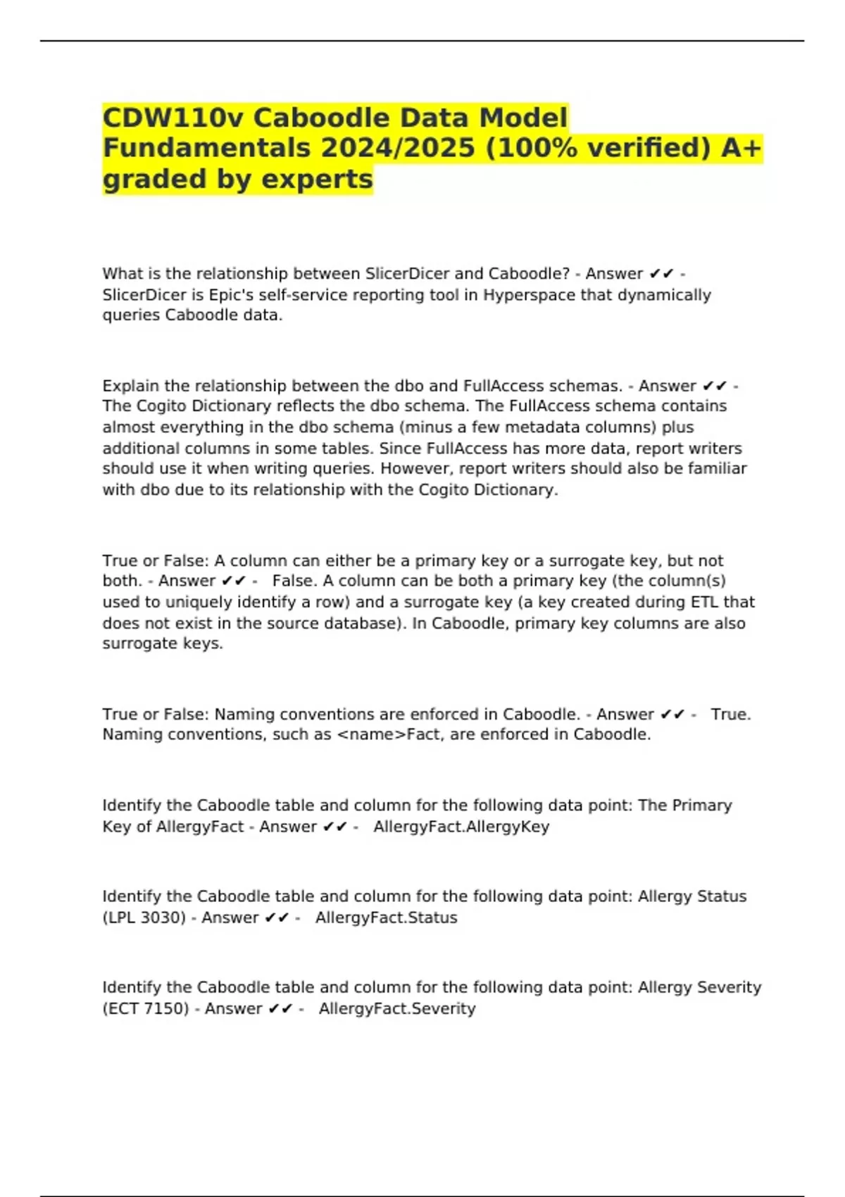 True or False: Naming conventions are enforced in Caboodle. - Answer ✔✔ - True.