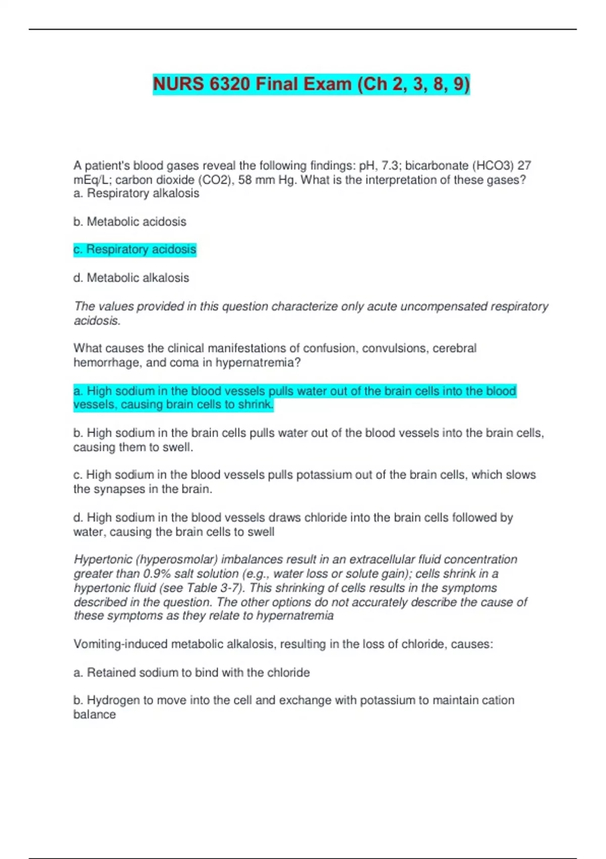a. High sodium in the blood vessels pulls water out of the brain cells into the blood