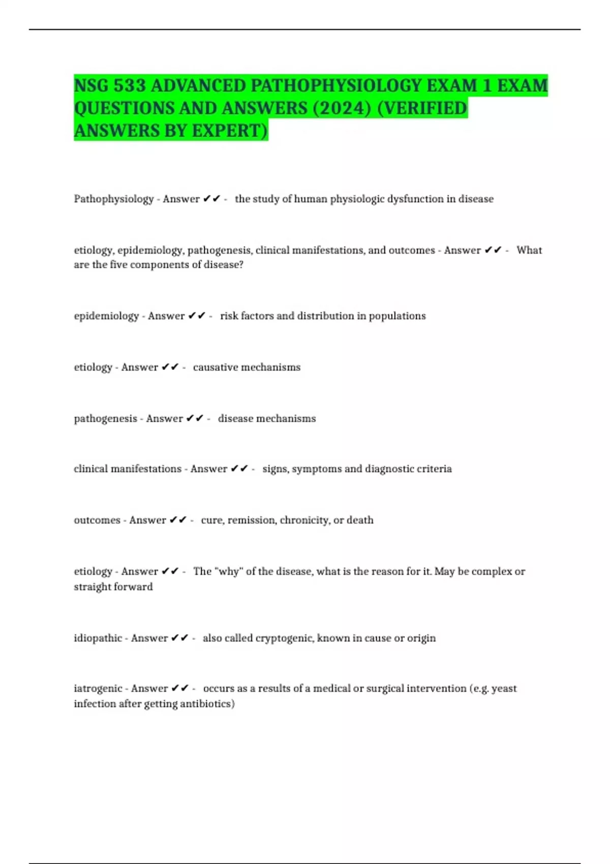 NSG 533 ADVANCED PATHOPHYSIOLOGY EXAM 1 EXAM