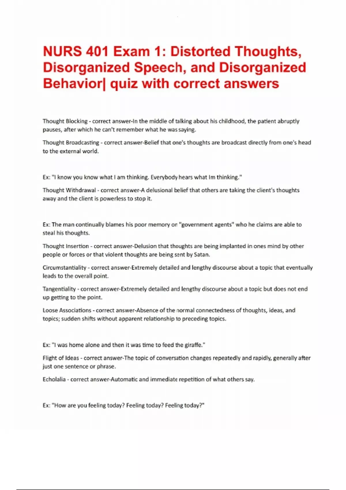 NURS 401 Exam 1 Distorted Thoughts, Disorganized Speech, and Disorganized Behavior quiz with correct answersNURS 401 Exam 1 Distorted Thoughts, Disorganized Speech, and Disorganized Behavior quiz with correct answersNURS 401 Exam 1 Distorted Thoughts, Disorganized Speech, and Disorganized Behavior quiz with correct answersNURS 401 Exam 1 Distorted Thoughts, Disorganized Speech, and Disorganized Behavior quiz with correct answersNURS 401 Exam 1 Distorted Thoughts, Disorganized Speech, and Disorganized Behavior quiz with correct answers