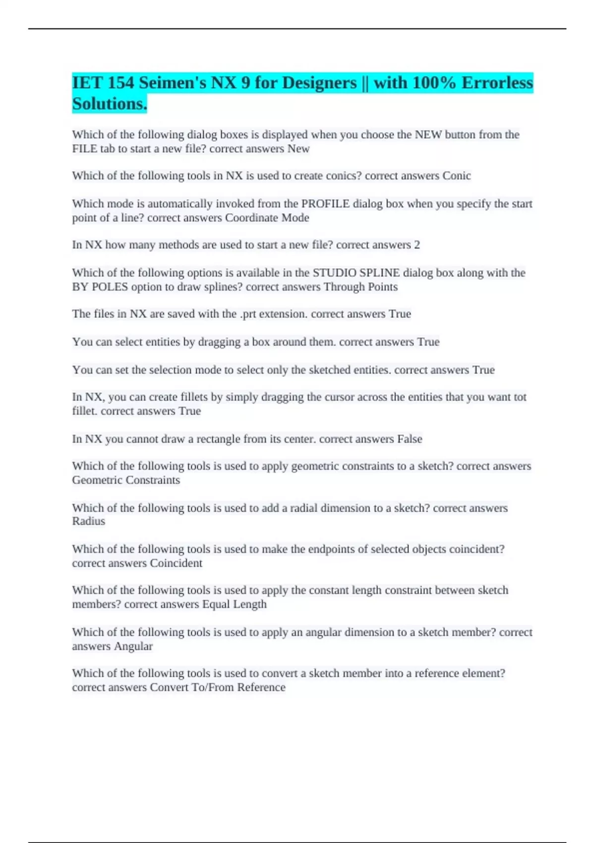 The files in NX are saved with the .prt extension. correct answers True