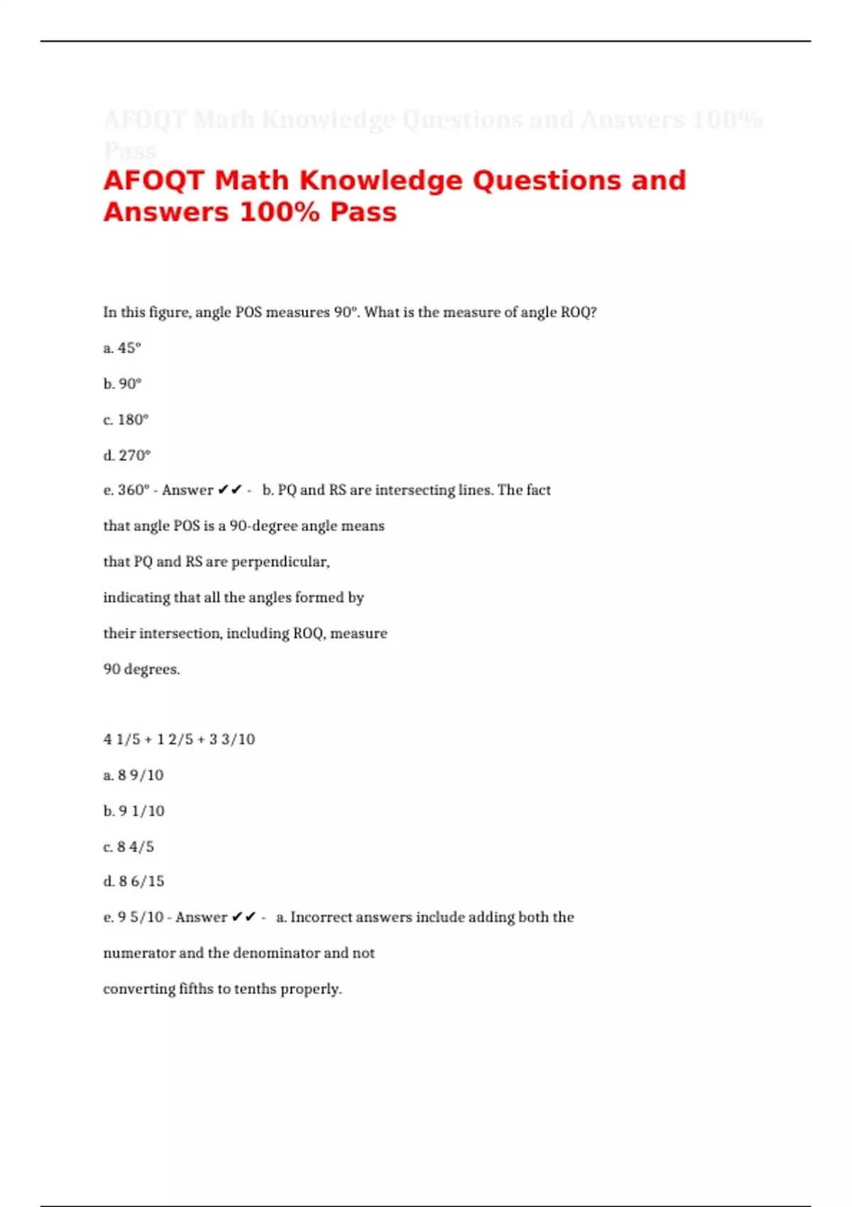e. 360° - Answer ✔✔ - b. PQ and RS are intersecting lines. The fact