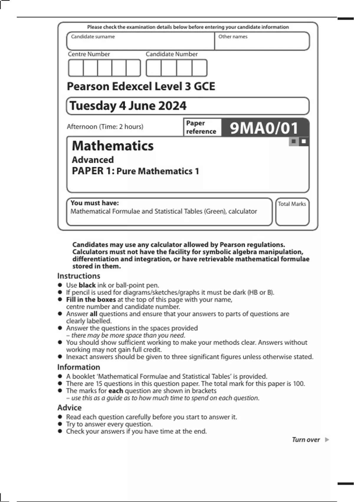 booklet ‘Mathematical Formulae and Statistical Tables’ is provided.