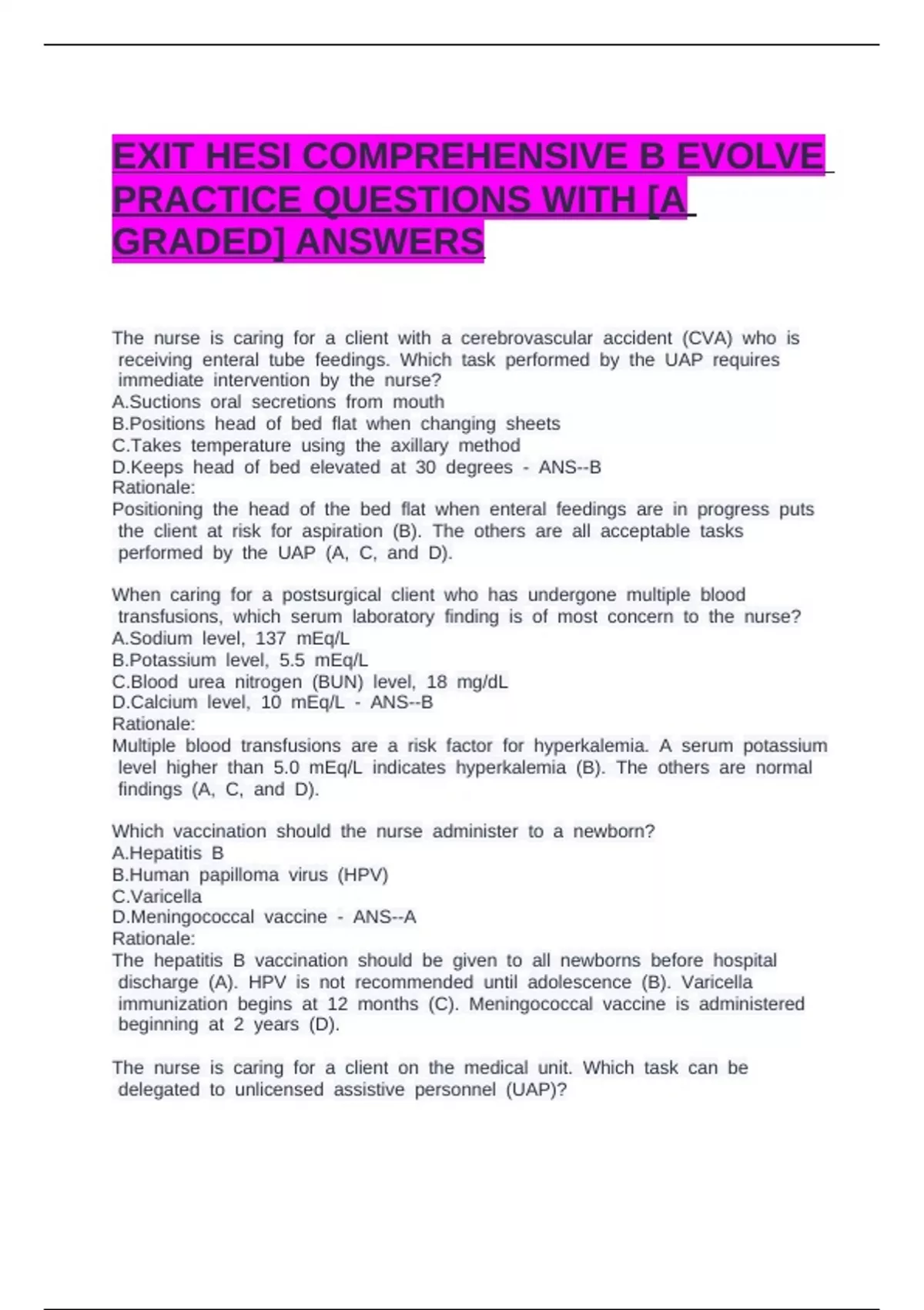 EXIT HESI COMPREHENSIVE B EVOLVE PRACTICE QUESTIONS WITH [A GRADED] ANSWERS