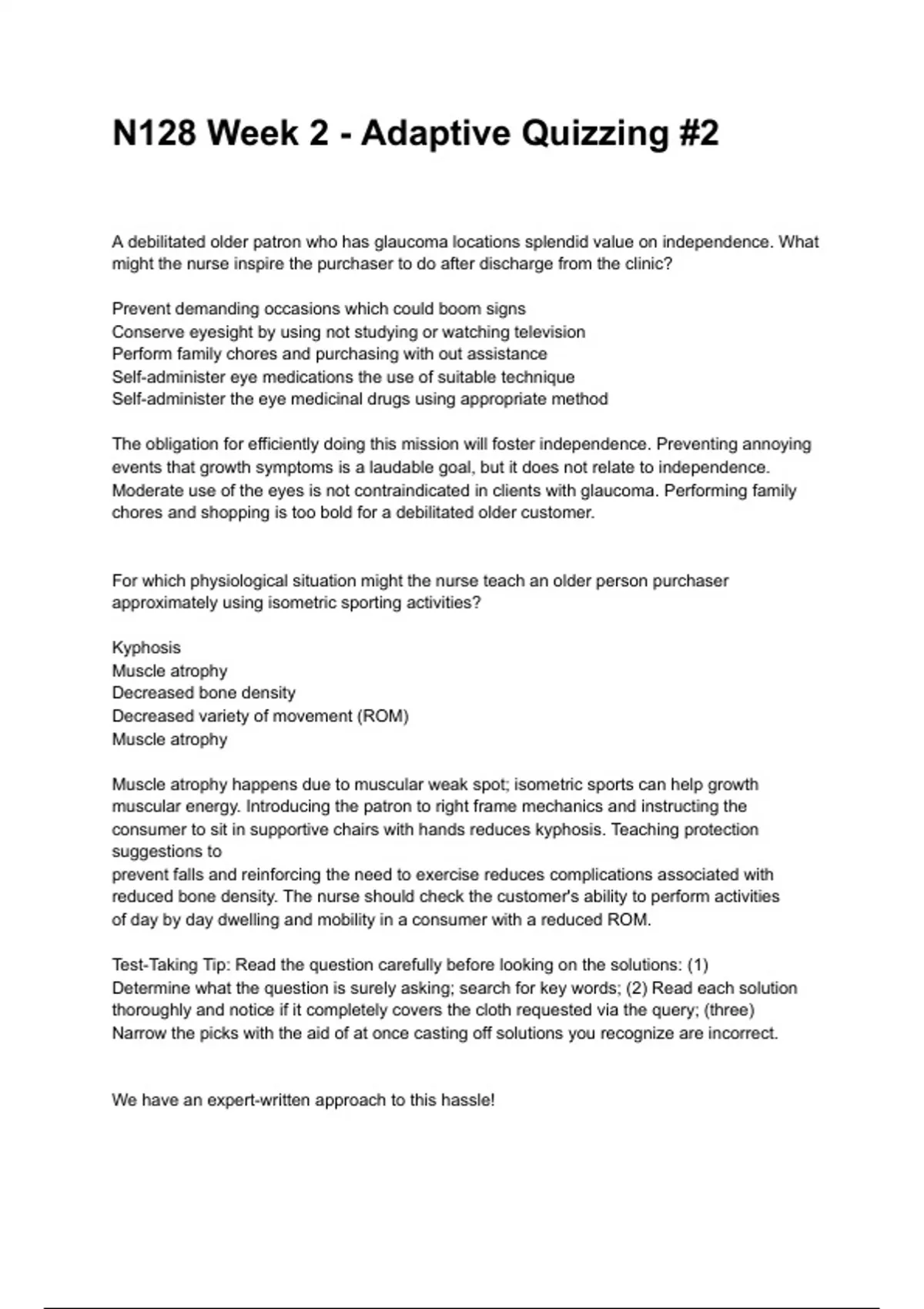Determine what the question is surely asking; search for key words; (2) Read each solution