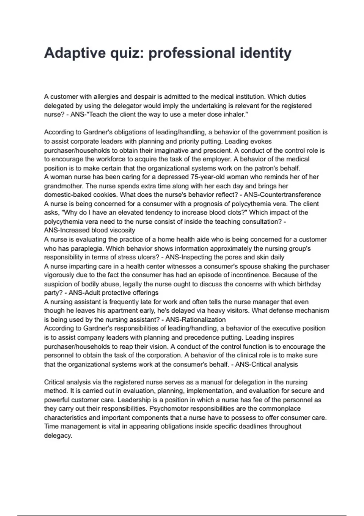 Critical analysis via the registered nurse serves as a manual for delegation in the nursing