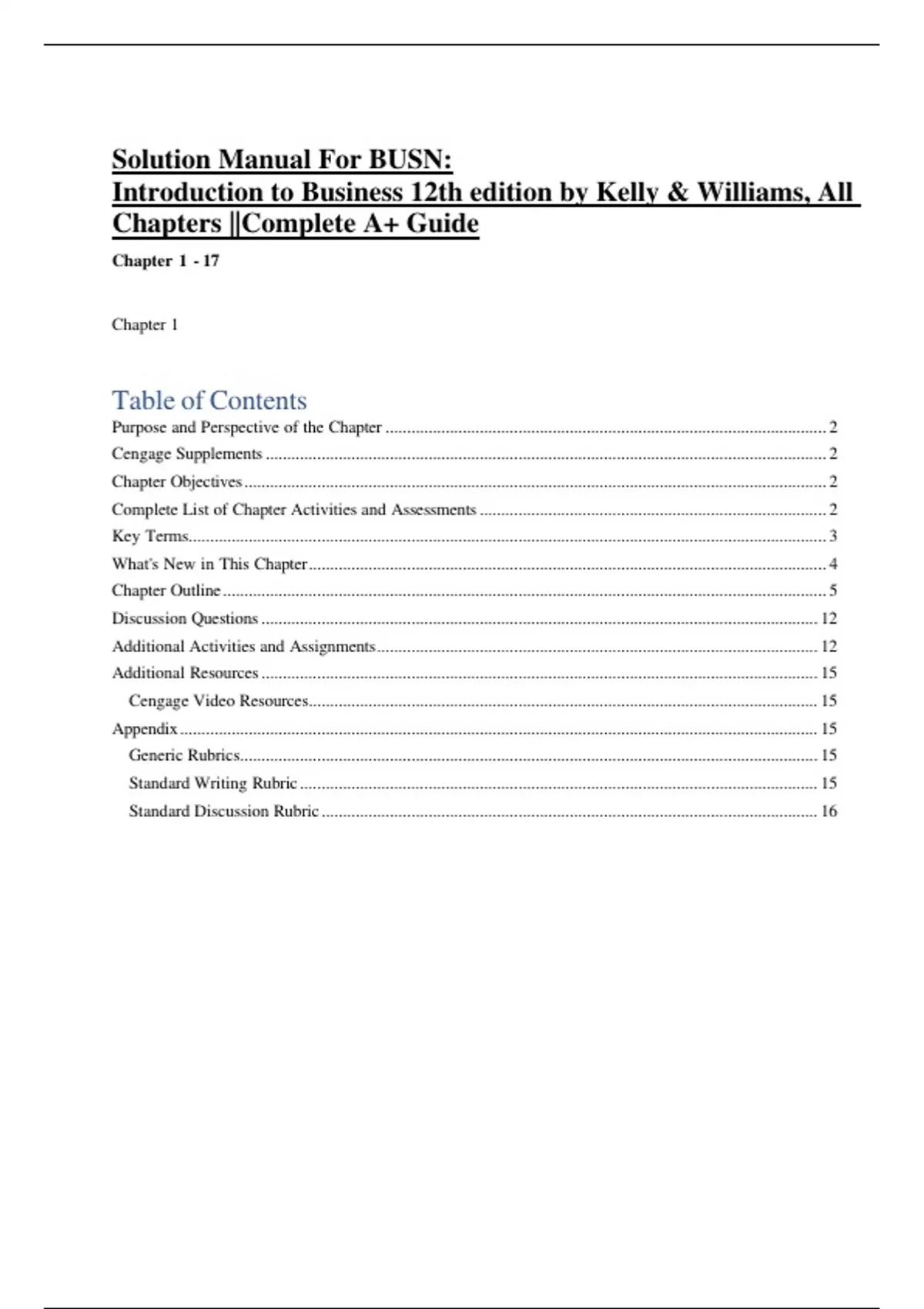 Solution Manual For BUSN: Introduction to Business 12th edition by Kelly & Williams, All Chapters 1 to 17 ||Complete A+ Guide