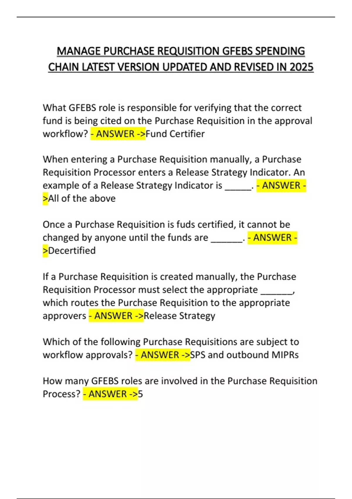 MANAGE PURCHASE REQUISITION GFEBS SPENDING