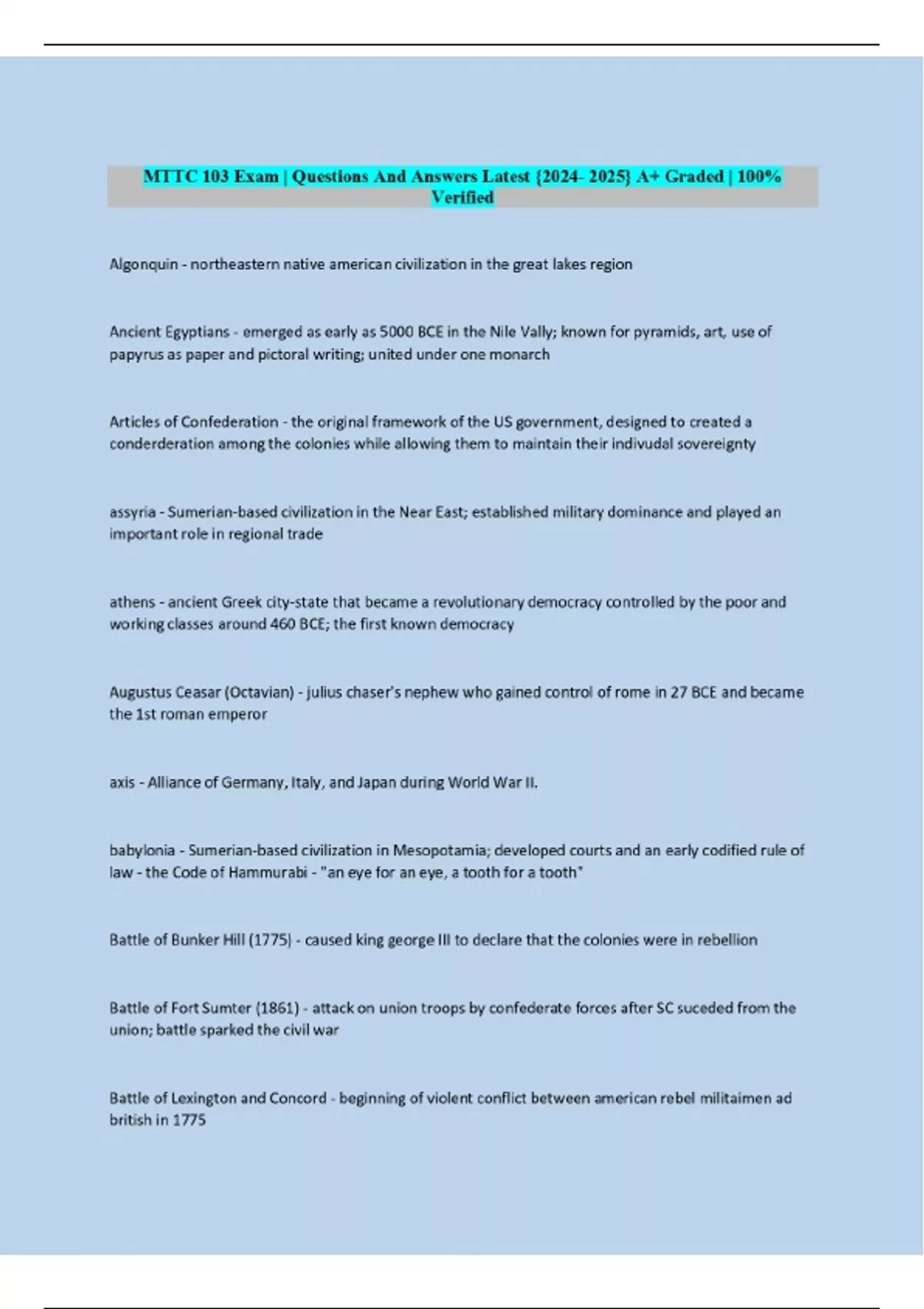 MTTC 103 Exam | Questions And Answers
