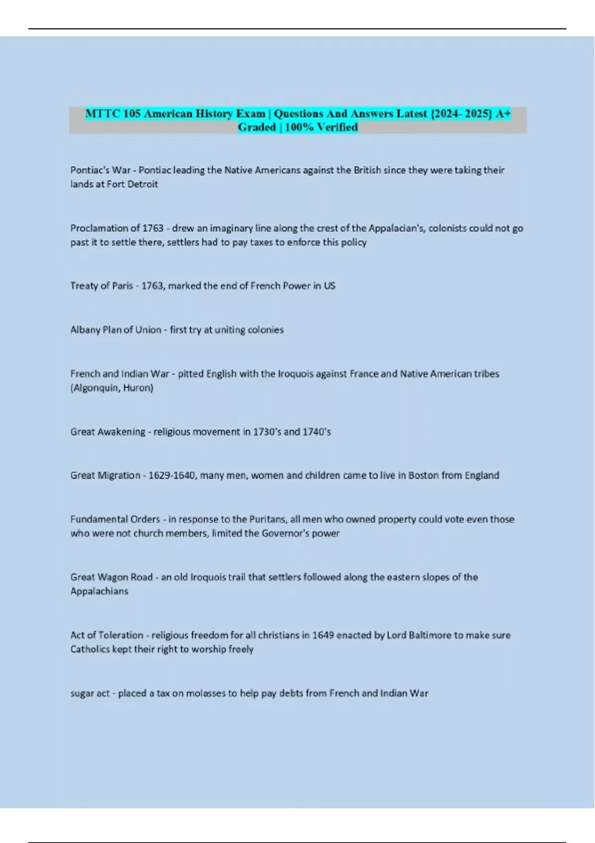 MTTC 105 American History Exam | Questions And Answers