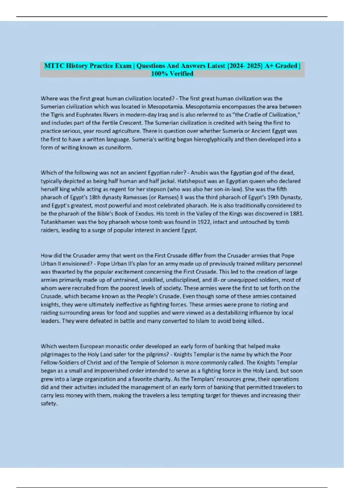 MTTC History Practice Exam | Questions And Answers