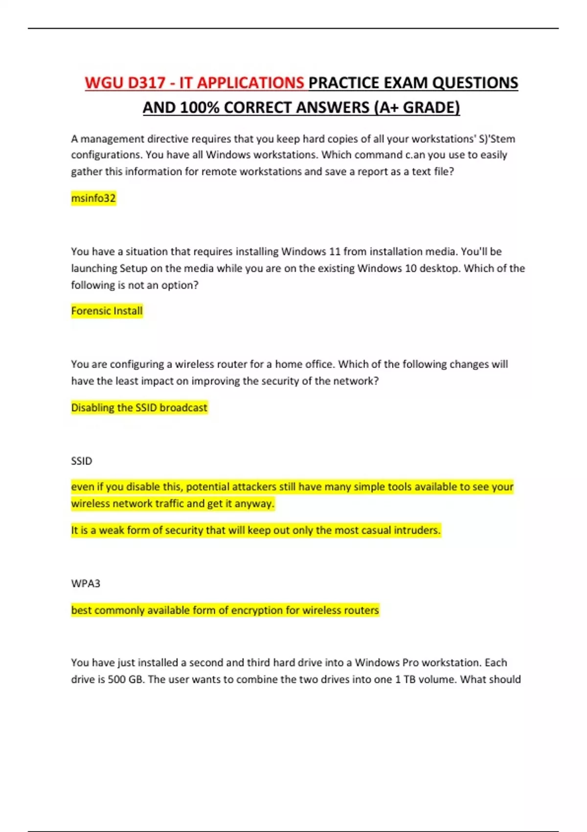 WGU D317 - IT APPLICATIONS PRACTICE EXAM QUESTIONS AND 100% CORRECT ANSWERS (A+ GRADE)