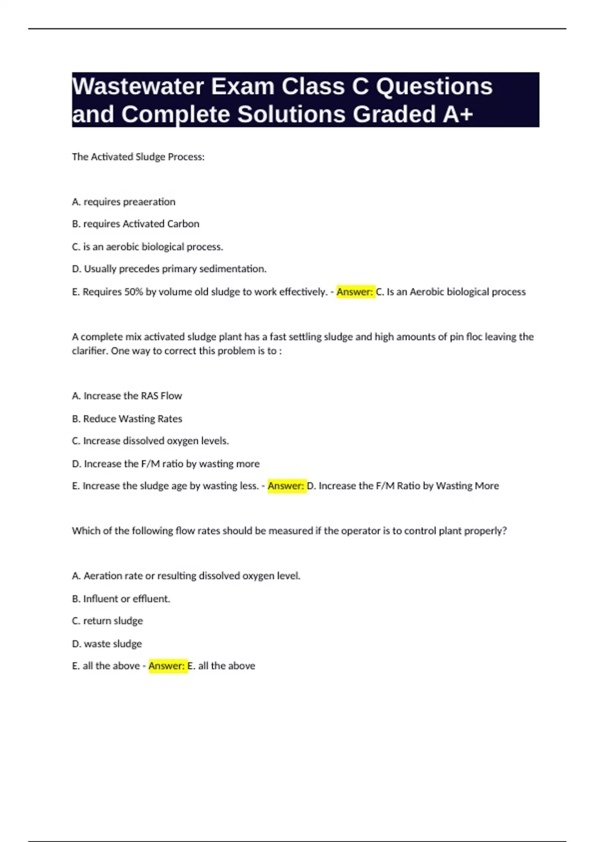 E. Requires 50% by volume old sludge to work effectively. - Answer: C. Is an Aerobic biological process