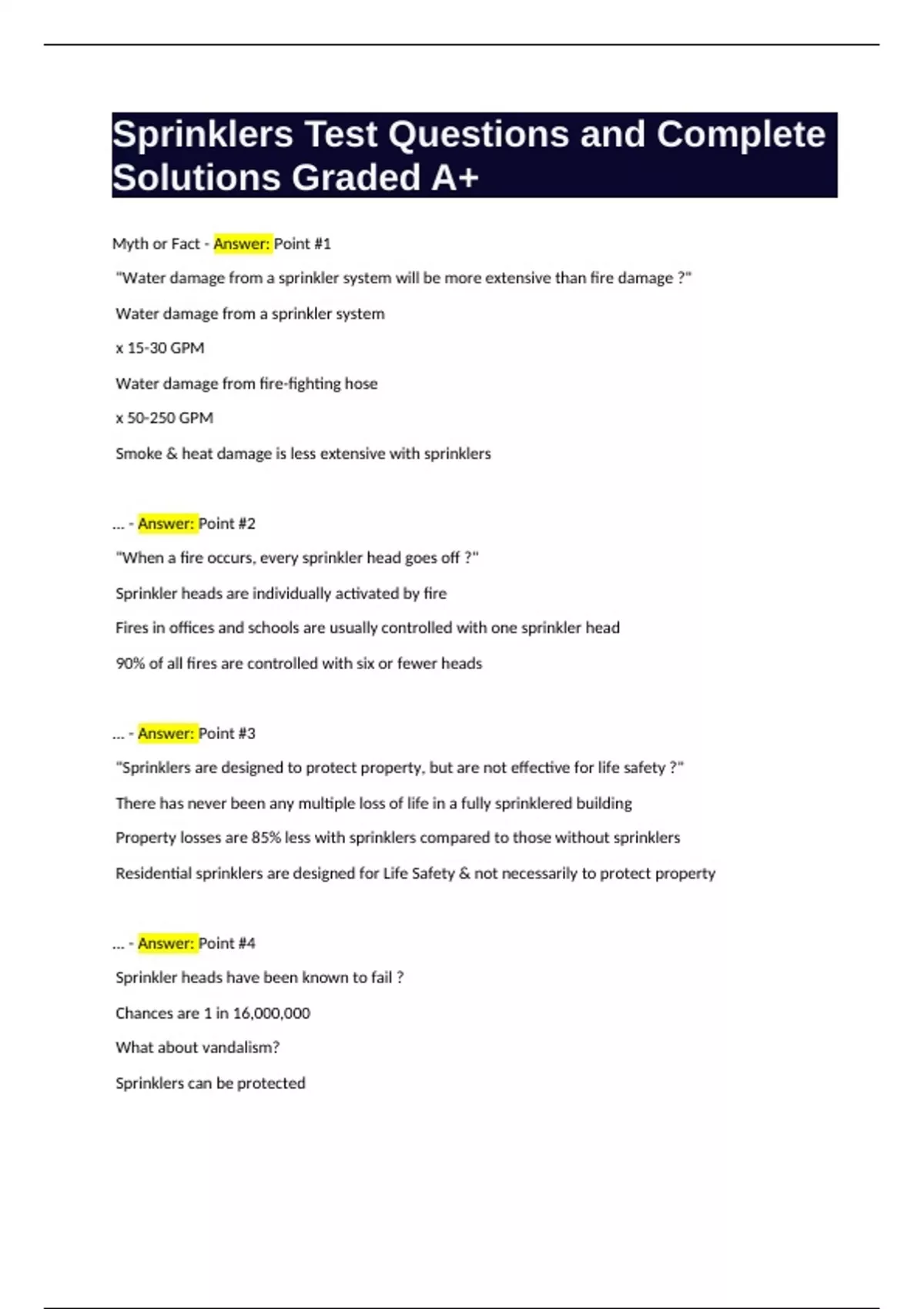 Sprinklers Test Questions and Complete Solutions Graded A+
