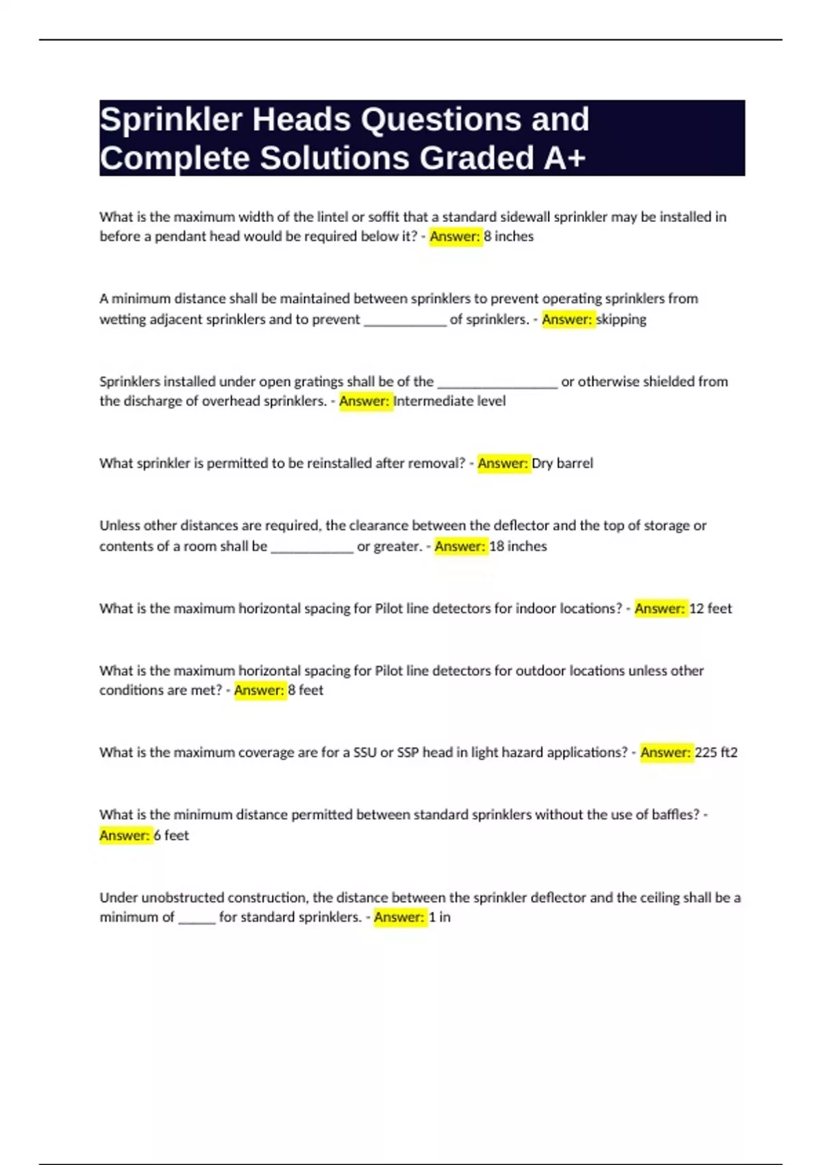 Sprinkler Heads Questions and Complete Solutions Graded A+