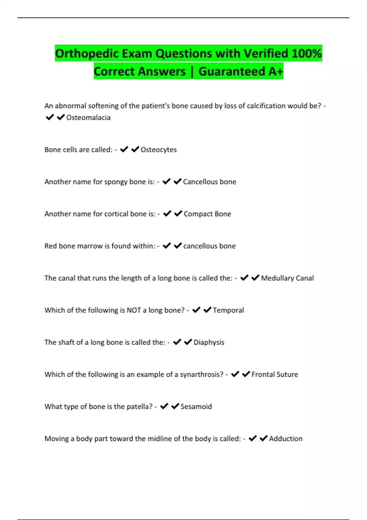 Orthopedic Exam Questions with Verified 100%