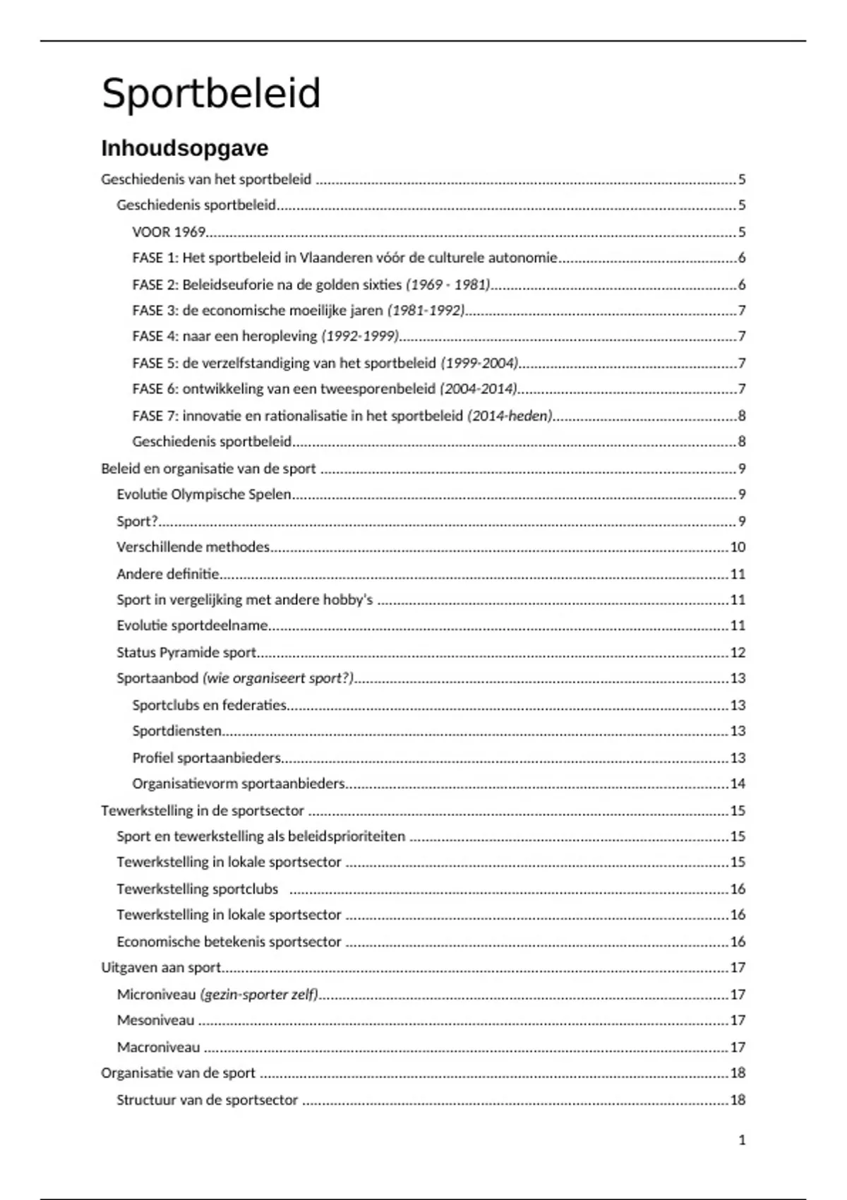 FASE 7: innovatie en rationalisatie in het sportbeleid (2014-heden)..............................................8